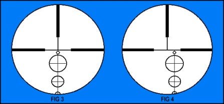 Can you tell that Figure 1 is zeroed and Figure 2 has been adjusted for wind? By just looking at these crosshairs, it would be difficult or impossible to know whether this scope is at zero or not. If the shooter had adjusted for windage or elevation it would be hard to tell without actually taking a test shot. In this example let us assume that Figure 1 is zeroed and Figure 2 shows an adjustment for three minutes of windage. The shooter can hear and feel the clicks and can see the rotation of the turret to the correct position, however the shooter doesn’t know for sure if the reticle moved correctly until a shot is fired.